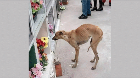 Amid the hushed rows of a [ce.met.ery], the place names carved in stone protect recollections of lives as soon as cherished, one other story quietly unfolds. A stray canine, frail and hollow-eyed, wanders between the graves. Its ribs hint the define of neglect, its weary steps echoing the silence of [a.ban.donm.ent]. Earlier than a distinct segment adorned with vivid, synthetic flowers, it pauses — gazing as if looking for consolation, or maybe for the compassion that life has [de.ni.ed] it.