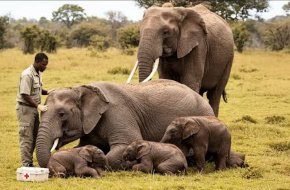 The mom, weary however sturdy, leaned in opposition to a trusted matriarch whereas a ranger quietly stepped ahead to verify on her situation. The calves, wobbly and unsure on their legs, huddled in opposition to their mom’s physique, their small trunks curling clumsily as they tried to face.