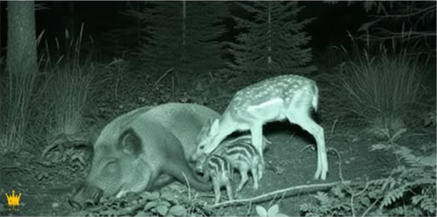The story started when a researcher set out a sport path digicam whereas finding out a wild boar inhabitants. He positioned it close to a boar’s den to watch how the moms have been feeding their younger. For weeks the footage confirmed nothing uncommon, piglets huddled collectively, nursing and consuming underneath their mom’s watchful eye.