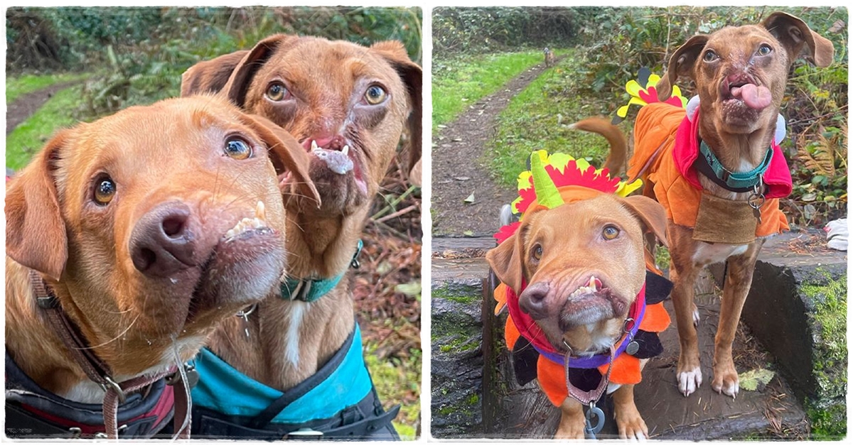 Picasso, a five- years canine, was born with a crooked nostril, whereas Newt, a one- years-old doggy, was born with no higher jaw.